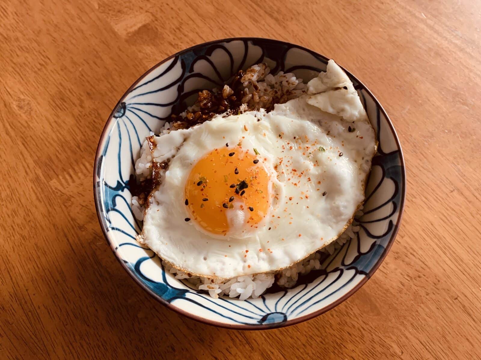 炊き立てのご飯にマーマイト薄く塗り、その上に目玉焼きを乗せて完成です(上の写真)🥚