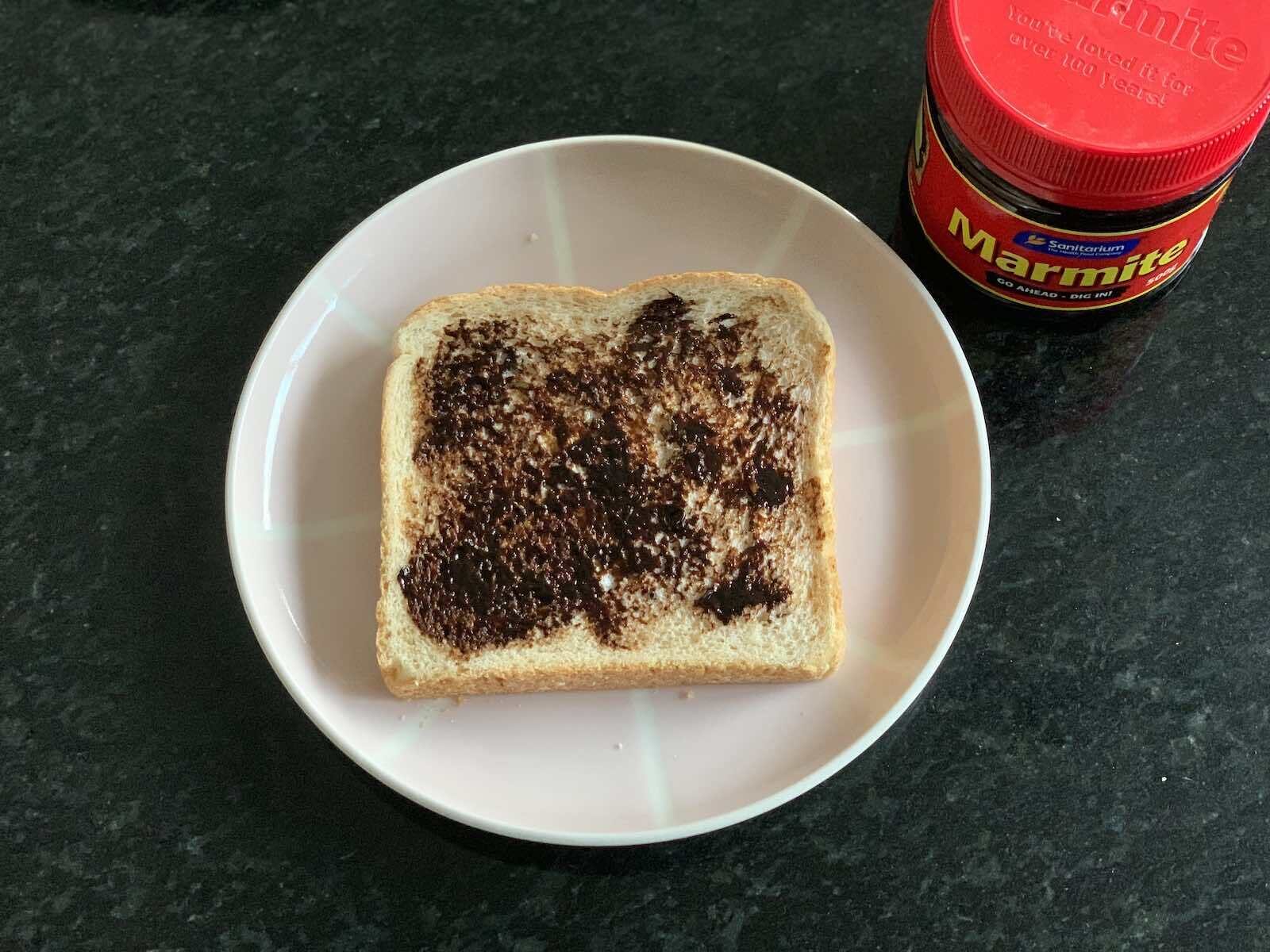 作り方は簡単です。まずパン一枚に軽くマーマイトを塗ります。