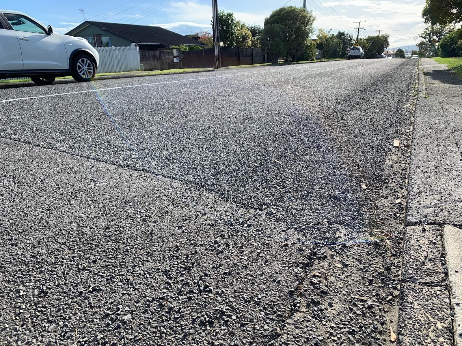 最初のうちは、「今日はここまでで明日から舗装するのかな」と思っていましたが、何日経ってもきれいに舗装される様子はなく、そのままの状態で終わりでした。